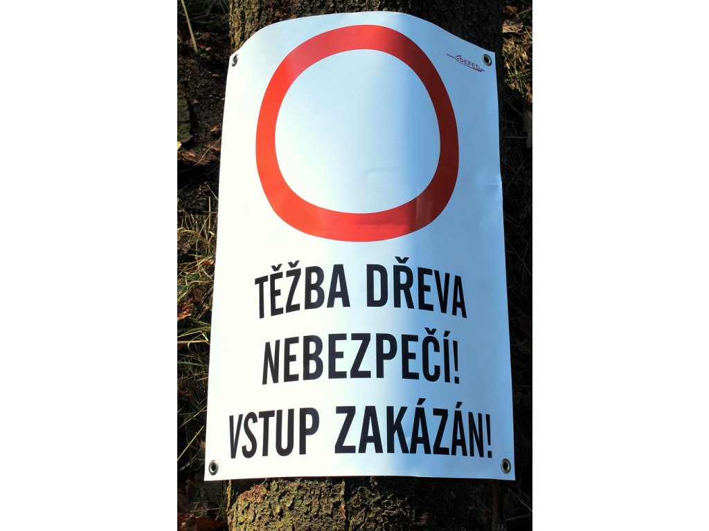 Baner značka ZÁKAZOVÁ TĚŽBA DŘEVA, NEBEZPEČÍ! VSTUP ZAKÁZÁN! rozměr 61 x 79,5 cm