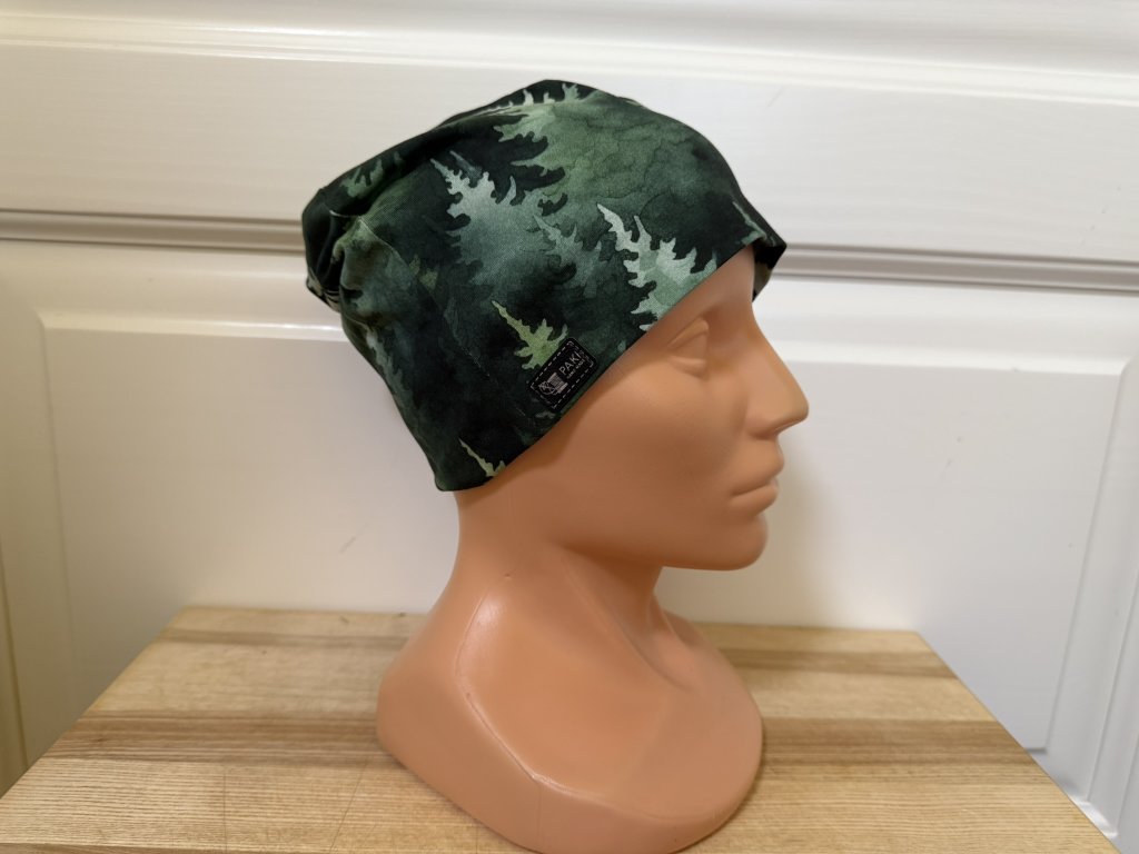 Sytě zelené odstíny, siluety jehličnanů a dojem hlubokého lesa. Tahle čepice potěší každého, kdo miluje přírodu a cítí se nejlíp obklopen(a) stromy.