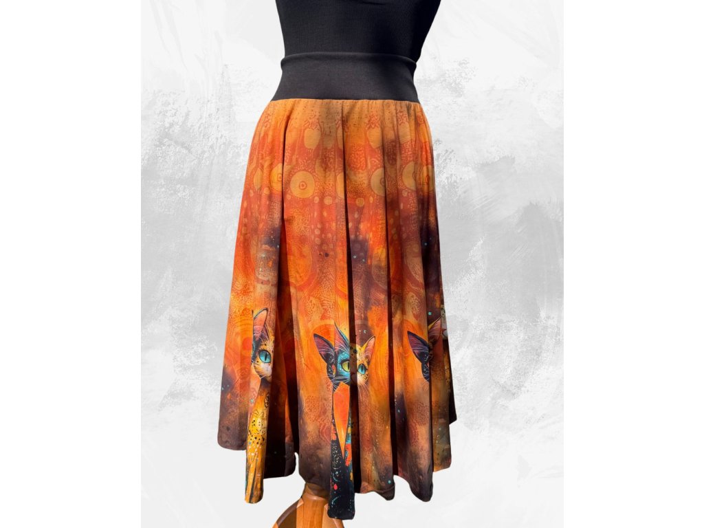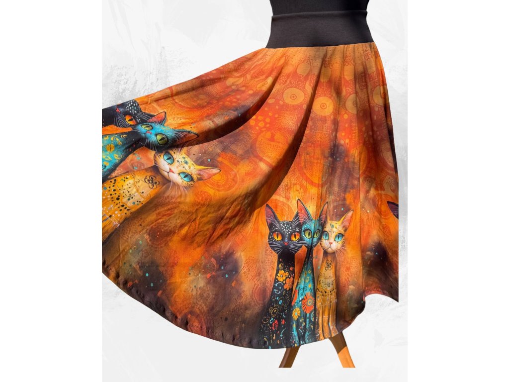 Dámská dlouhá kolová úpletová sukně, kočky