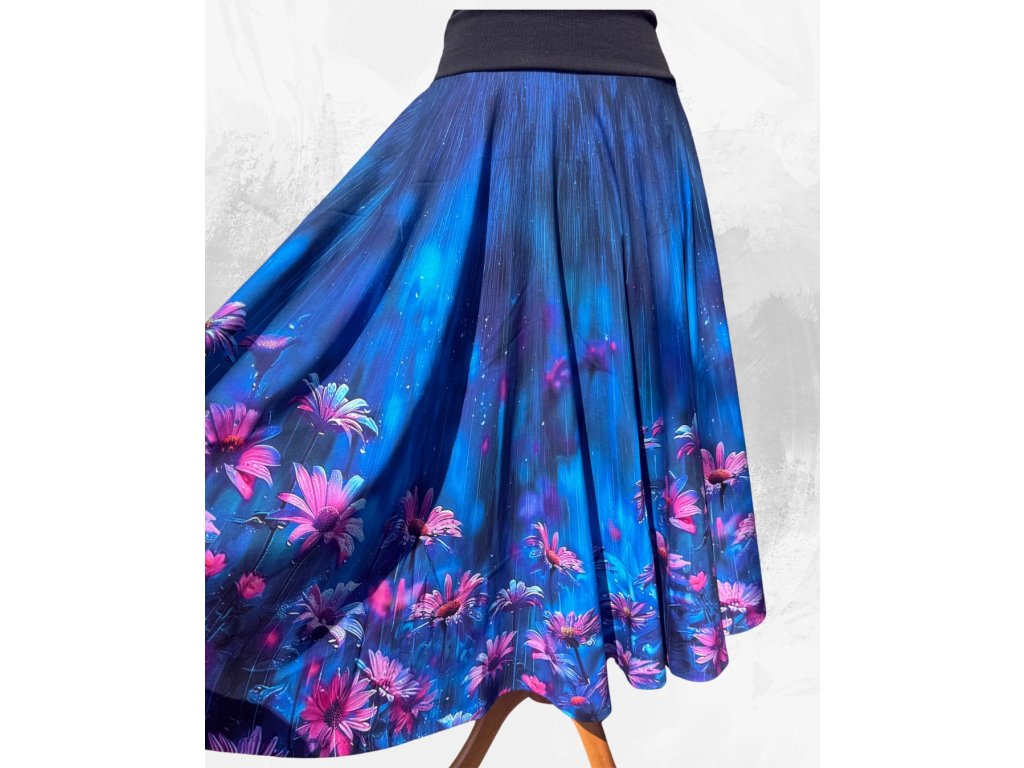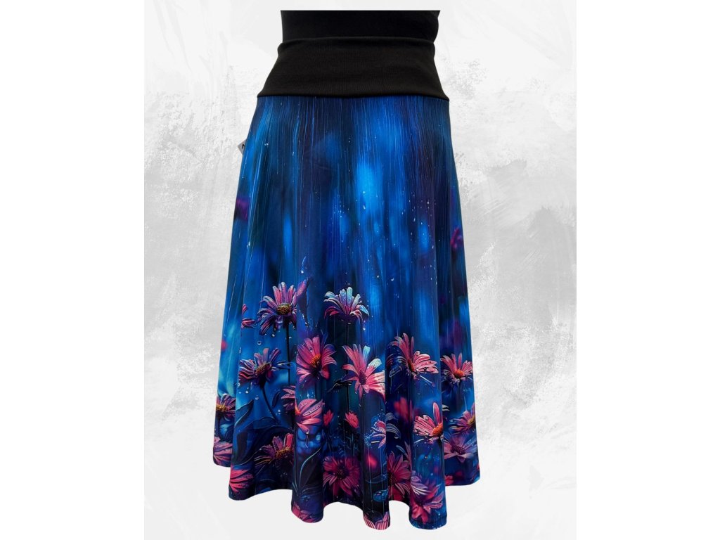 Dámská dlouhá kolová úpletová sukně, tajemné kopretiny