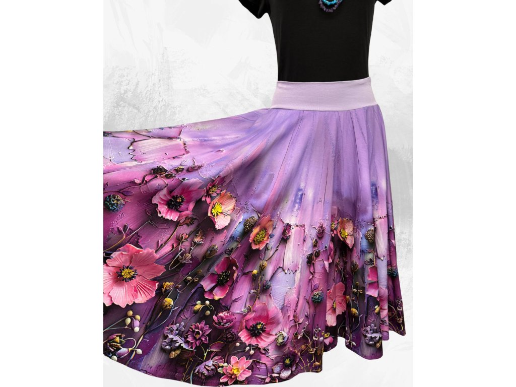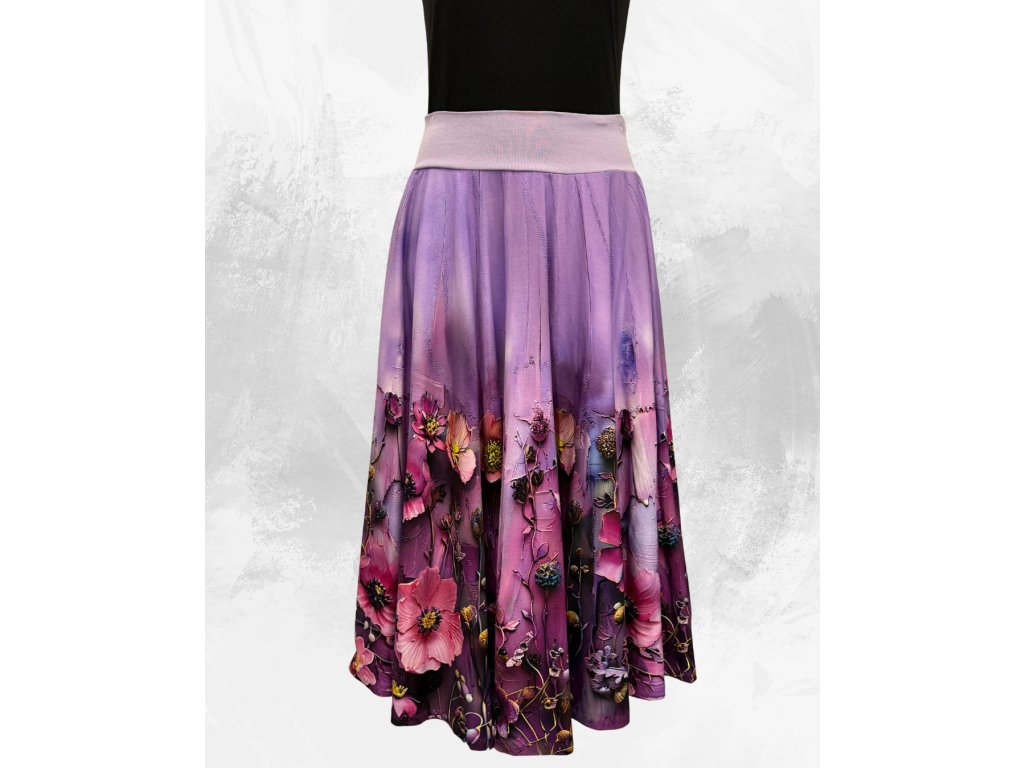Dámská dlouhá kolová úpletová sukně,rozpité květy