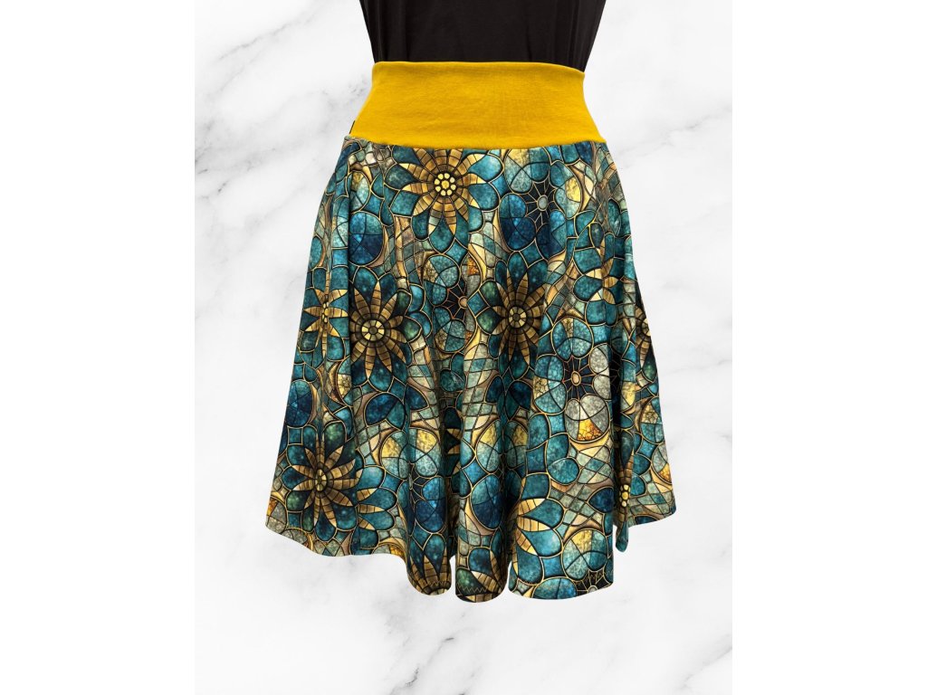 Dámská krátká kolová úpletová sukně, barevná mandalová sklíčka
