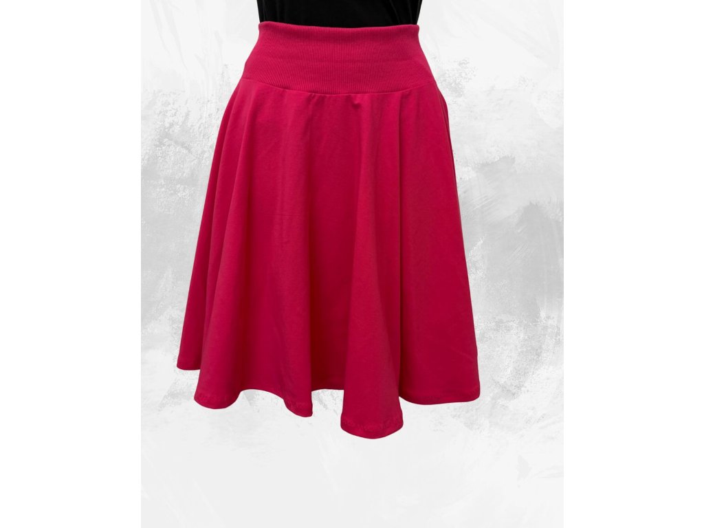 Dámská krátká kolová úpletová sukně, fuchsiová délka 55 cm