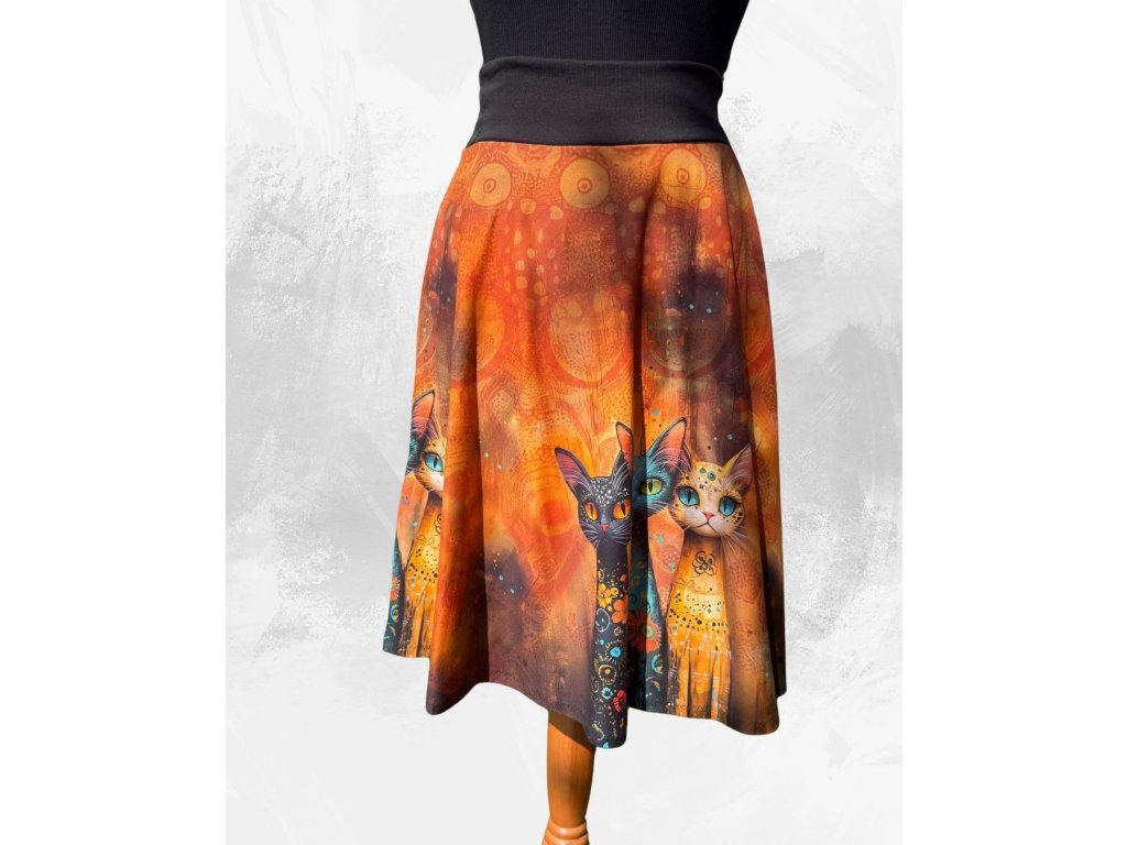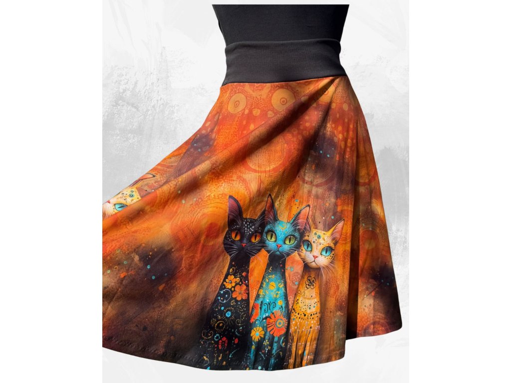 Dámská midi půlkolová úpletová sukně, kočky, vel S,M