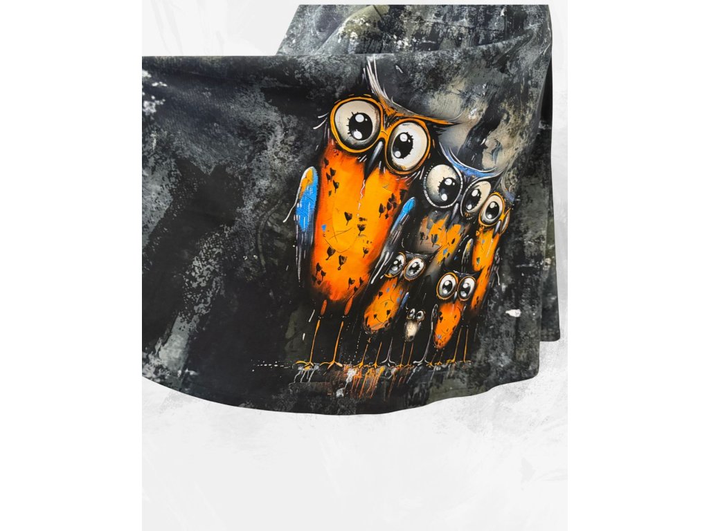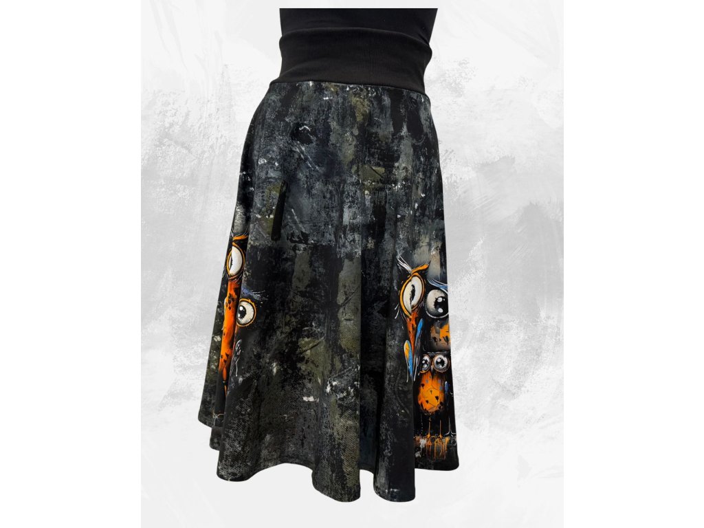Dámská midi půlkolová úpletová sukně, sovy