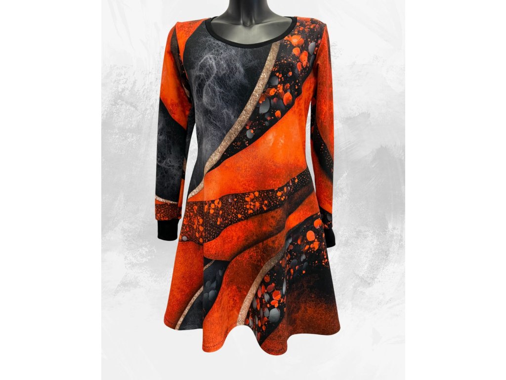 Dámské mikino-šaty se sukní do A, červená geometrie, vel. 38