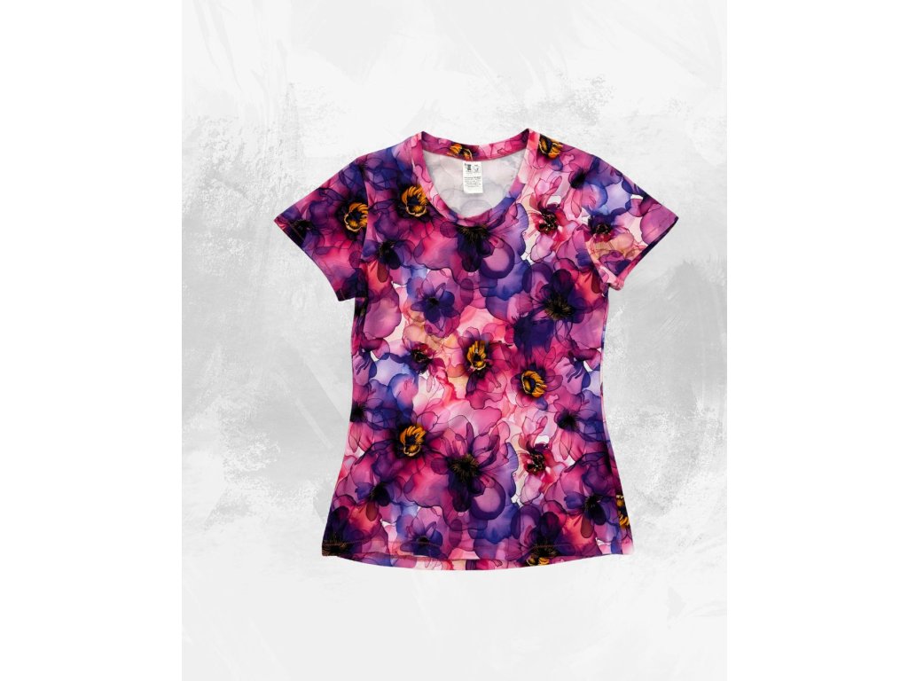 Dámské triko s krátkým rukávem, fialové květy