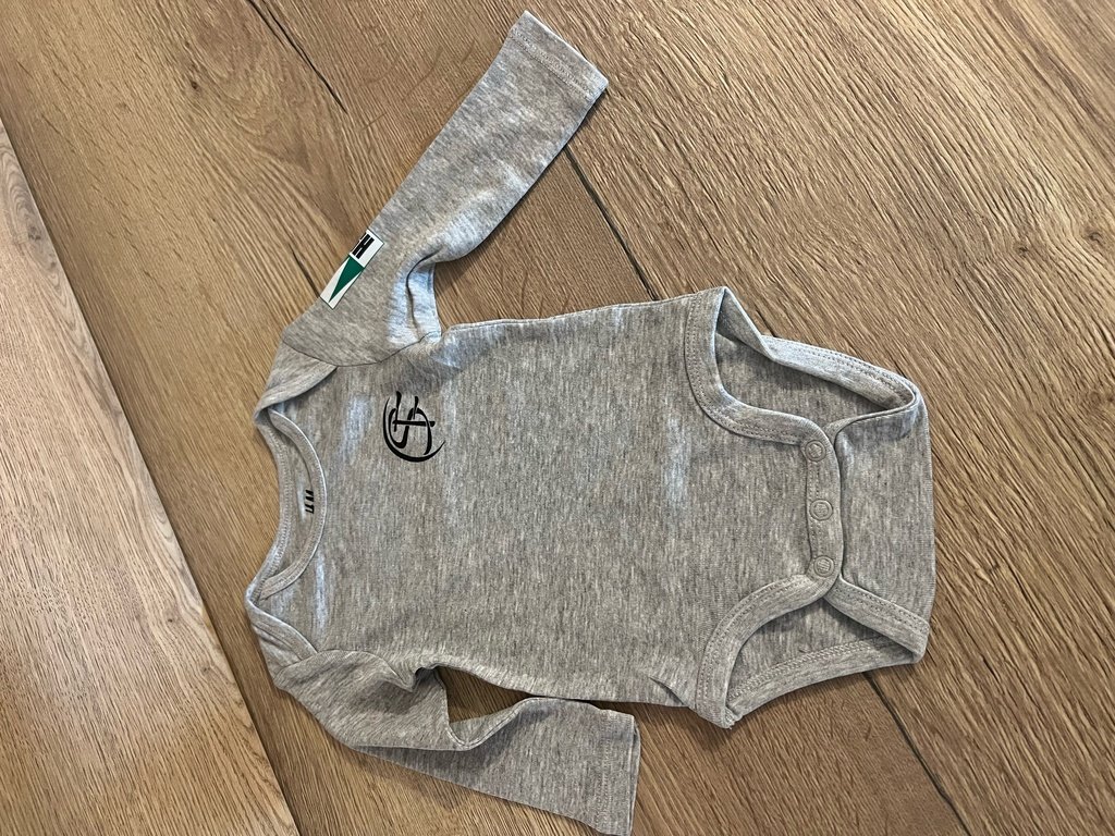 Dětské body, potisk HSM na prsou, Logo HSM na rukávku, mašinka na zadní straně na zádíčkách. Složení - organická bavlna 100%