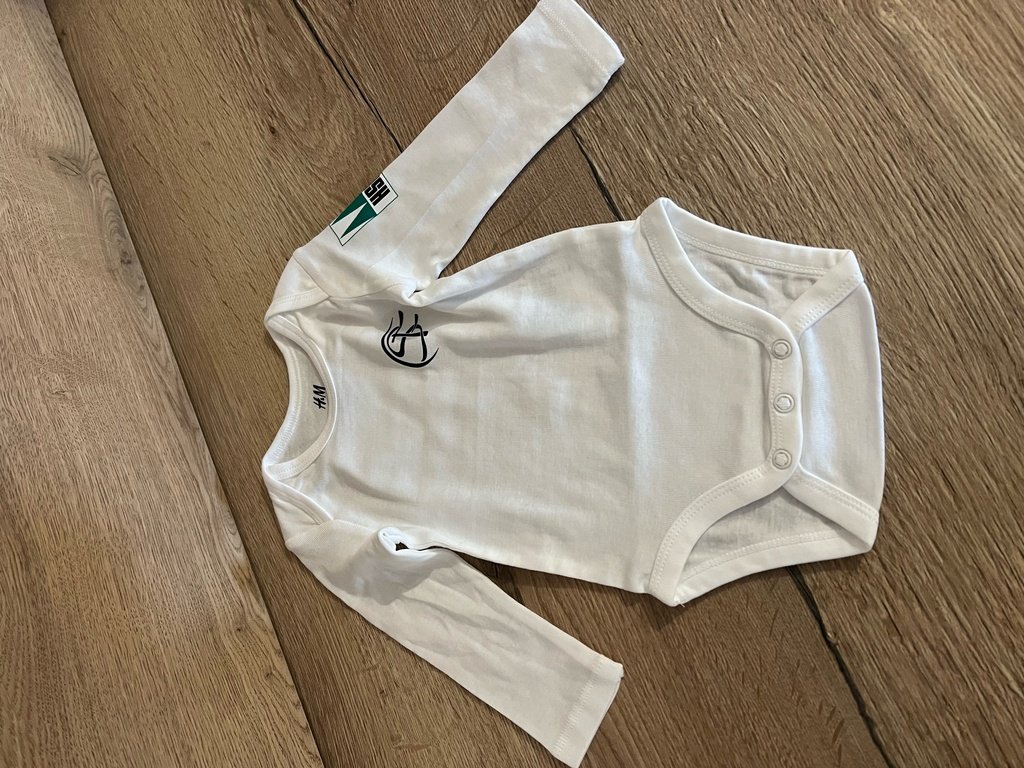 Dětské body, potisk HSM na prsou, Logo HSM na rukávku, mašinka na zadní straně na zádíčkách. Složení - organická bavlna 100%