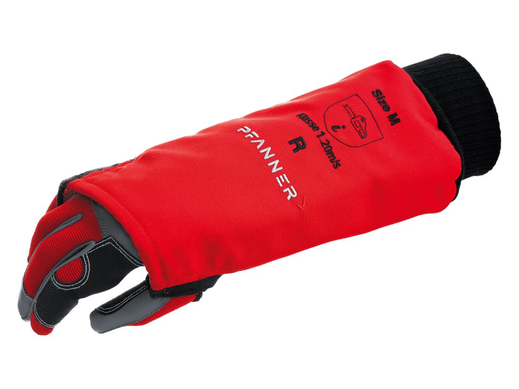Protipořezová vrstva kryje nejen předloktí, ale také hřbet ruky, čímž rozšiřuje ochrannou zónu při manipulaci s pilou. Ergonomické provedení umožňuje pohodlné nošení bez výrazného omezení pohybu.