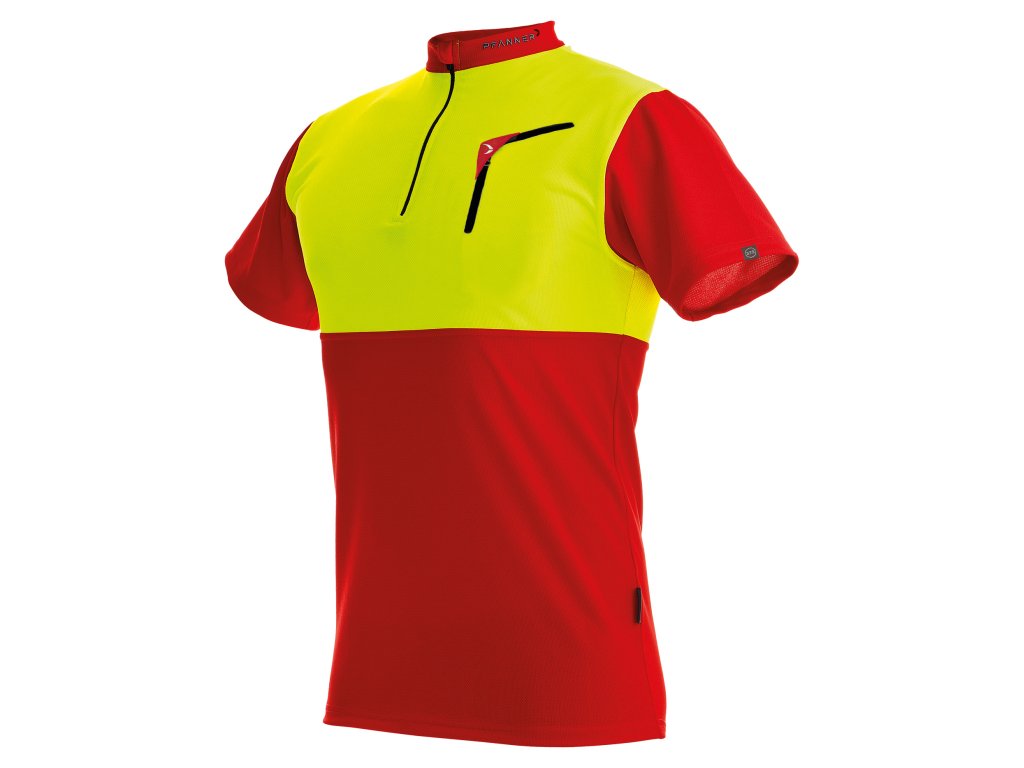 Pánské funkční triko PFANNER Zipp-Neck s krátkým rukávem, neonověžlutočervená