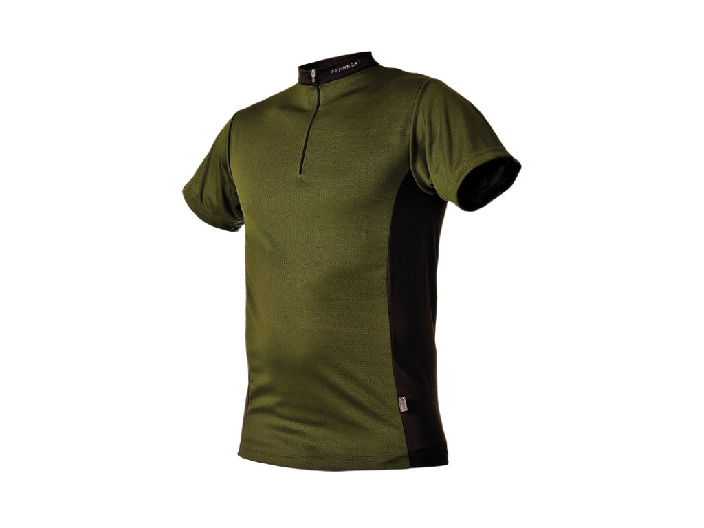 Pánské funkční triko PFANNER Zipp-Neck s krátkým rukávem, olivová
