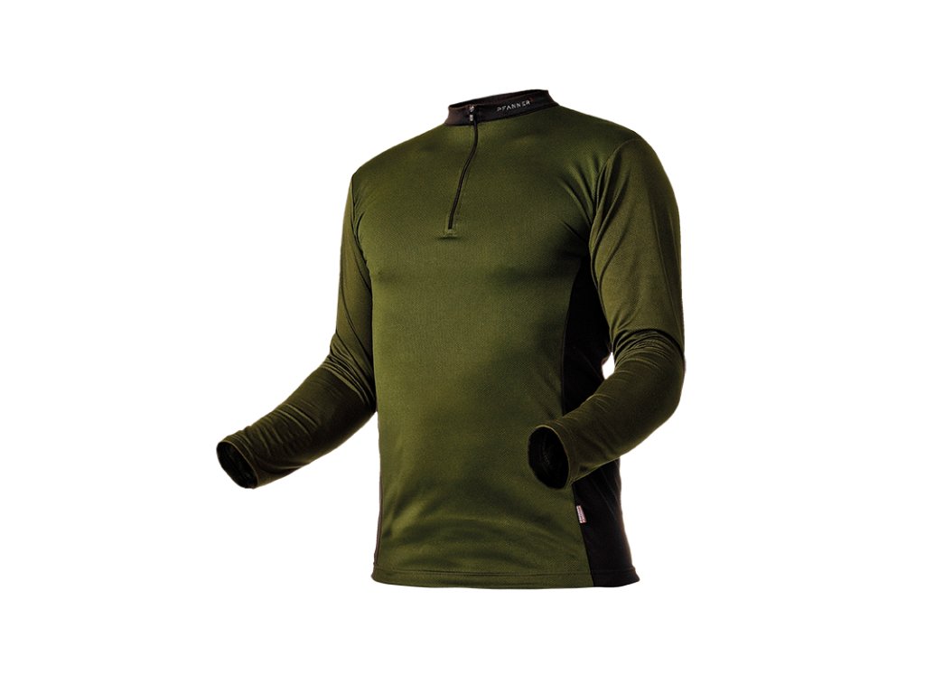 Pánské funkční triko PFANNER Zipp-Neck s dlouhým rukávem, olivová