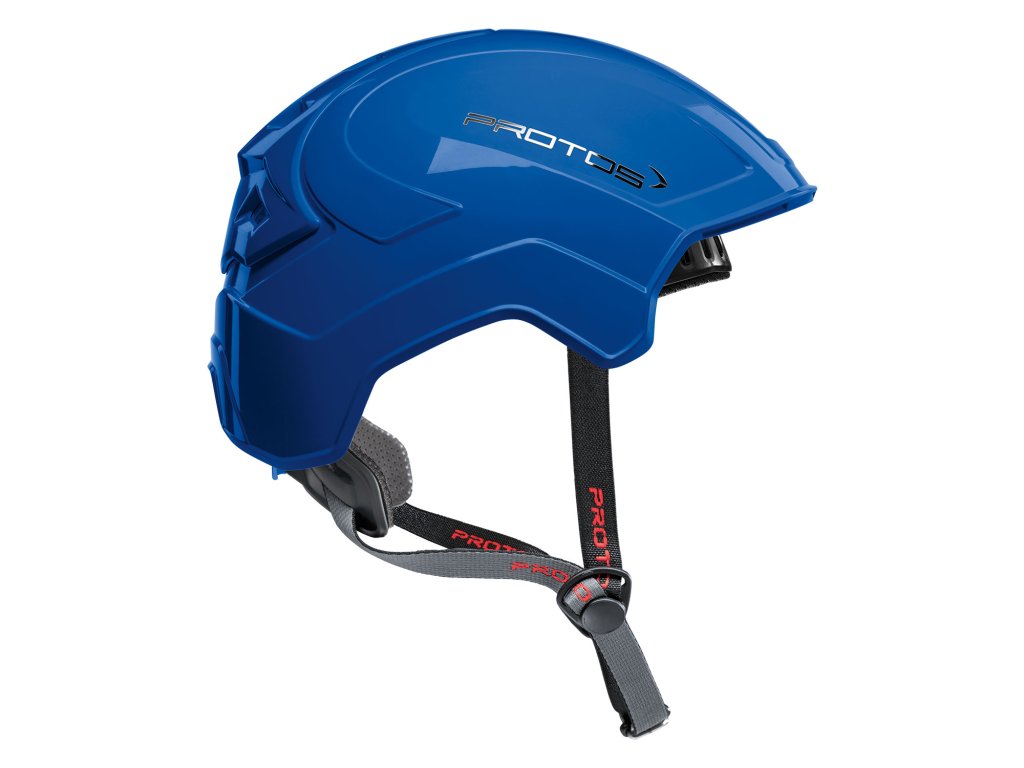- Protos® je vybaven patentovaným systémem na krk, který při zapojení lehce obepíná zadní část vašeho krku a tím drží Protos® bezpečně na hlavě, aniž by potřeboval podbradník. Ochrana proti krku funguje také jako další bezpečnostní prvek, protože chrání zadní část hlavy v případě pádu nebo nárazu a zamezuje nebezpečí zlomeniny lebky.