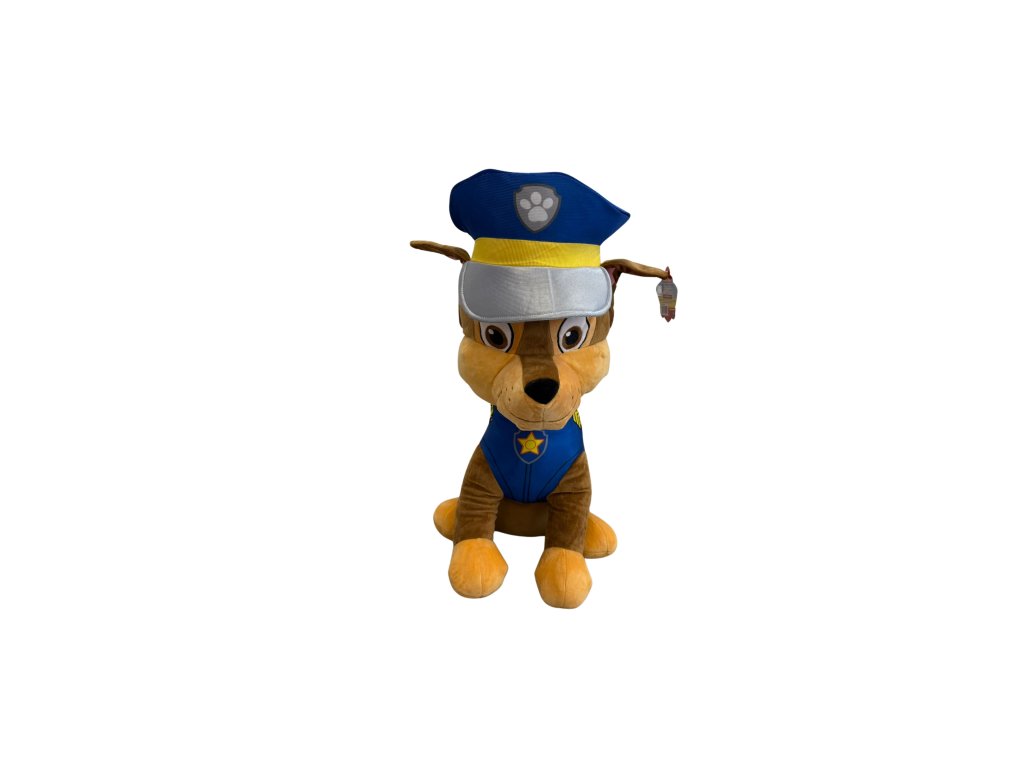 Roztomilý plyšový pejsek Chase v policejní uniformě z oblíbeného seriálu Tlapková patrola. Má typickou modrou vestu s hvězdou, policejní čepici a přátelský výraz. Tento měkoučký kamarád potěší každého malého fanouška pohádek a stane se skvělým společníkem na hraní i mazlení.