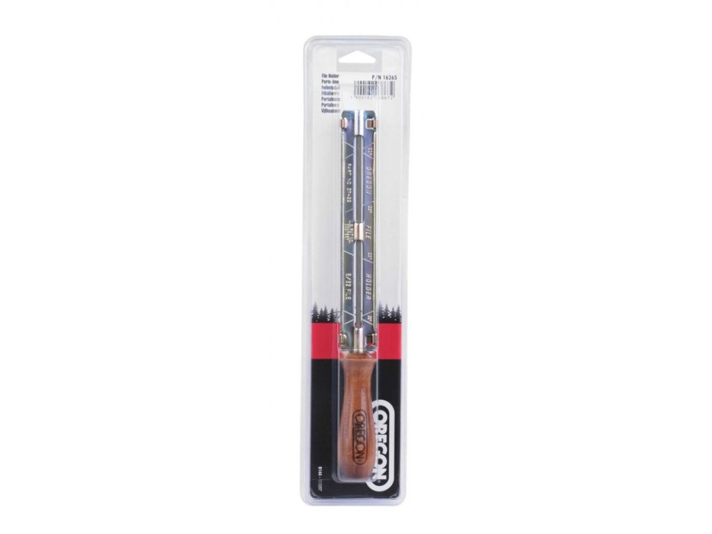 Praktické vodítko pilníku značky OREGON určené pro přesné a správné ostření pilových řetězů. Vodítko pomáhá udržet správný úhel broušení a optimální hloubku vedení pilníku, čímž zajišťuje maximální řezný výkon a rovnoměrné opotřebení řetězu.